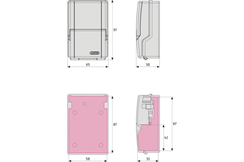 - Maße Außengehäuse (HxBxT) 95 mm x 62 mm x 38 mm